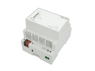 · KNX TP (Twisted Pair) communication port set to 9600 baud, electrically isolated from power supply